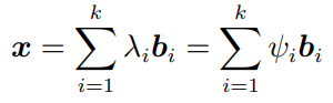 - 모든 벡터 x∈V 는 벡터의 선형 결합이며 모든 선형 결합은 고유합니다.